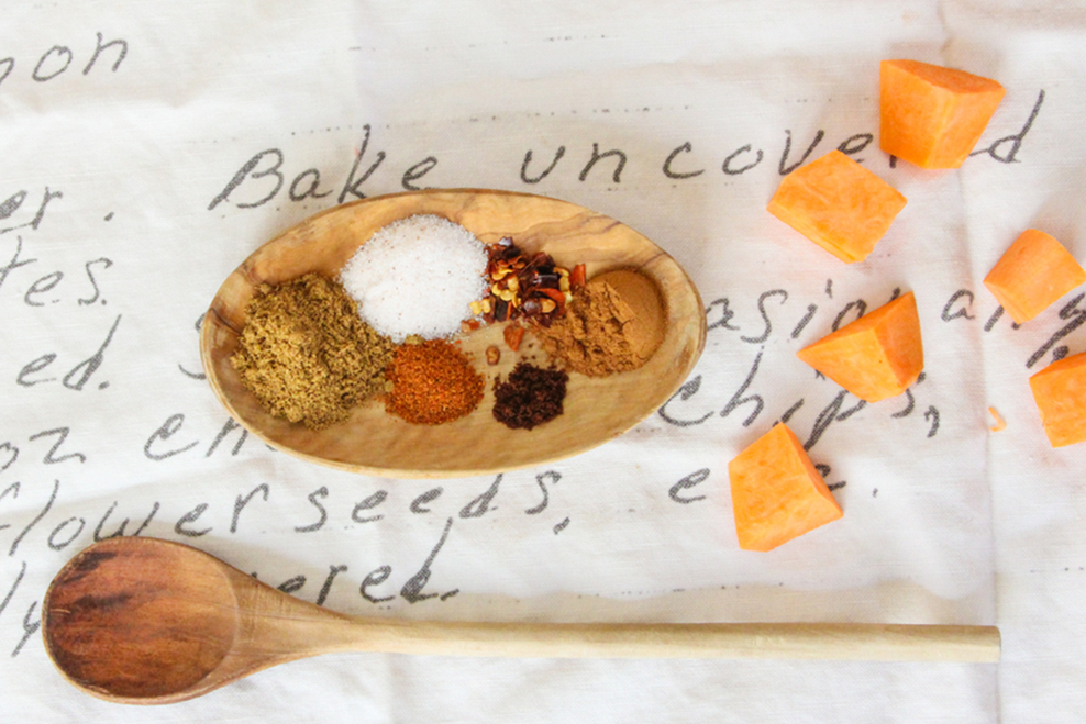 - In a small dish, mix together the cumin, salt (or soy sauce), cinnamon, turmeric, chili powder, black pepper, cayenne and clove powder. Set aside for now.