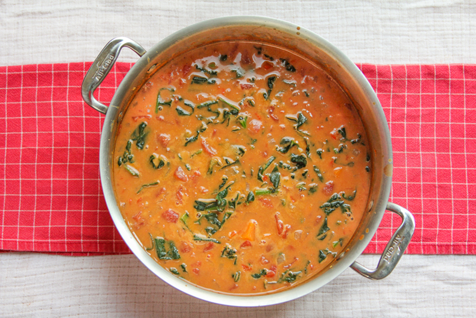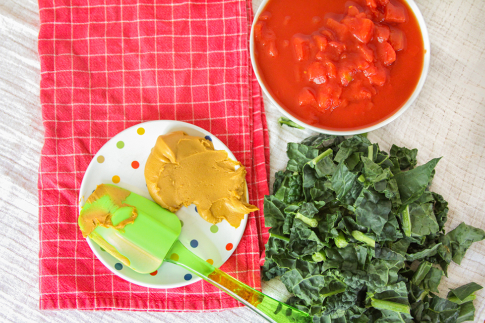 - Add the tomatoes and peanut butter. Stir until all the peanut butter and spices are all mixed in well.