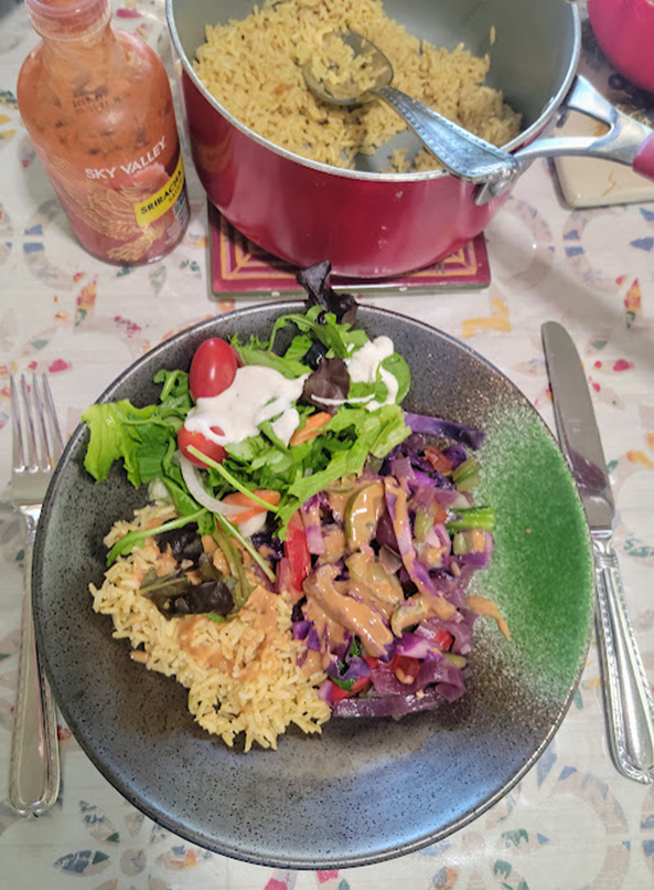 Serve stir-fry in individual bowls side by side with your basmati rice. You may serve this bowl with a side salad as well if you like with a plant based no or low- oil dressing.