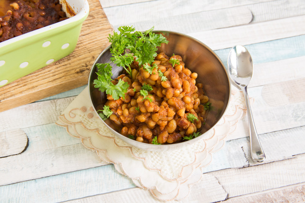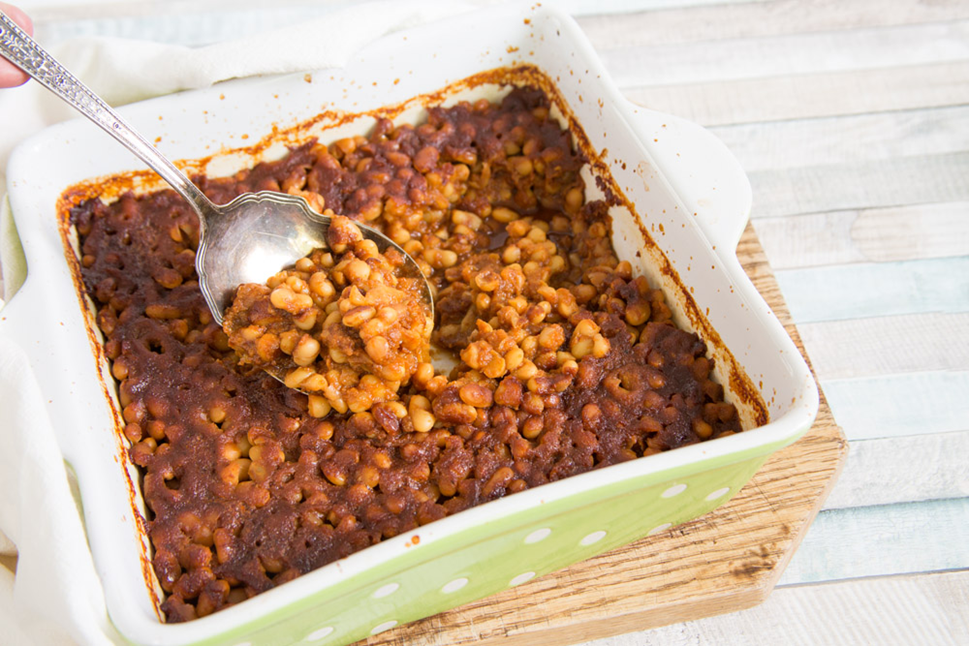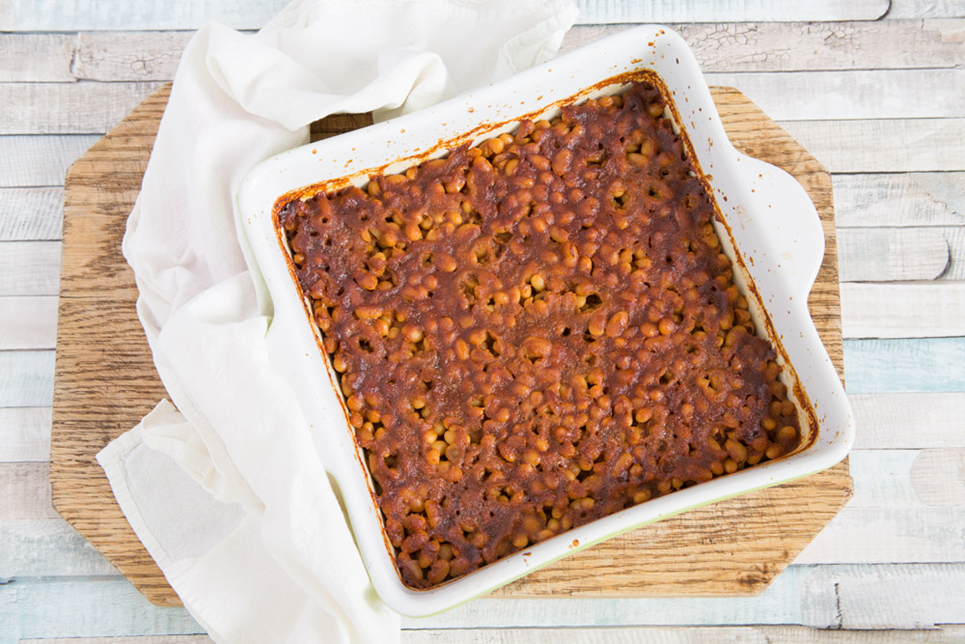 NOTE: The beans thicken as they set. You can choose to either bake your beans on batching day or mix them up and store them in the baking dish to bake them on your meal night. If baking on meal night, remove them from the fridge and allow to set on a counter while your oven preheats and then bake them (uncovered) at the same time and temperature as stated in the recipe.